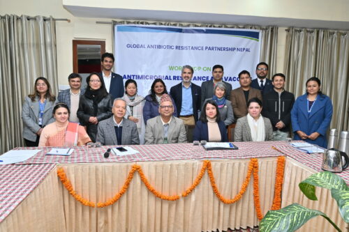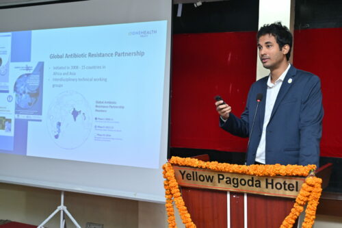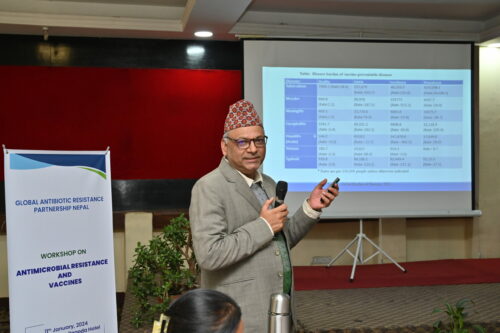 GARP Nepal organized an in-person workshop on ‘Antimicrobial Resistance and Vaccines in Nepal,’ in Kathmandu on January 11, 2024. Experts from several public health institutions joined the discussion on using vaccines in the fight against AMR, including the Nepal Public Health Foundation (NPHF), the National Immunization Technical Advisory Group, the Department of Health Services, the National Public Health Laboratory, the Oxford University Clinical Research Unit, and Tribhuvan University Teaching Hospital, among others. The workshop, organized jointly by NPHF and the One Health Trust, included presentations and discussions that touched upon the AMR burden in the human and animal sectors in Nepal, the importance of immunization programs in national AMR strategies, and ways to convey the recommendations of the forum to policymakers. OHT’s Rishiraj Bhagawati presented the work done by GARP in various countries so far, and evidence on how immunization can mitigate the AMR burden in the country.