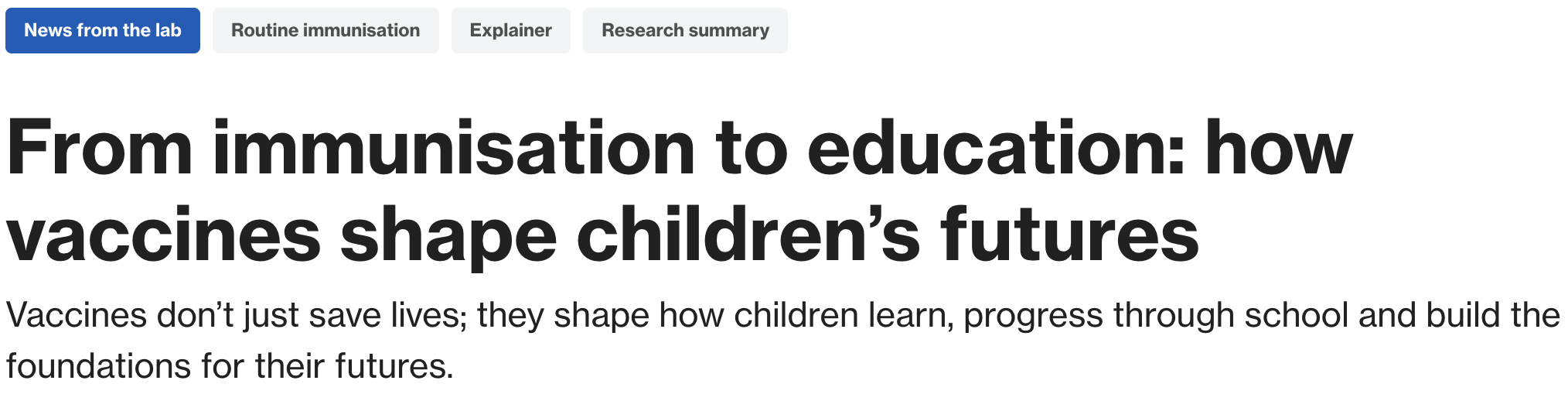 There is growing evidence that vaccines shape how children learn, progress through school, and fare as adults. New research by OHT’s Dr. Arindam Nandi and colleagues found that children born after India’s Universal Immunisation Programme rollout in the late 1980s completed roughly 0.2 to 0.3 additional years of schooling on average, with women gaining nearly one extra year. Similar findings emerged from Burkina Faso, where a 1984 vaccination campaign was linked to higher school enrollment and increased agricultural productivity decades later. Across multiple studies, benefits were greatest for children from the most disadvantaged households, suggesting that vaccination acts as an equity tool, narrowing gaps that infectious disease would otherwise widen. [Gavi]
